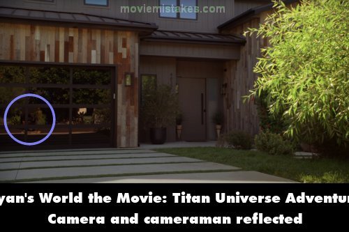 Visible crew/equipment: When Dan walks away after the magic show, it cuts to a shot showing the front of the house, and the camera and cameraman are reflected in the garage door. (00:05:42)
