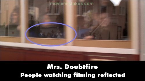 Visible crew/equipment: When we see the tram just before the pool scene, if you look in the glasswork, you can see a reflection of people watching the filming take place. (01:14:15)