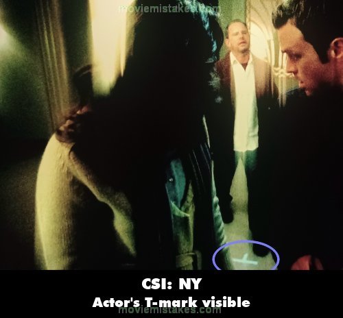 Visible crew/equipment: While Mac and Stella are speaking to Heather and Scott, the couple who reside in 9C, Scott tells them everything that transpired with the man from the elevator, and at the start of the flashback, a blue T-mark is visible on the floor. (00:31:05)