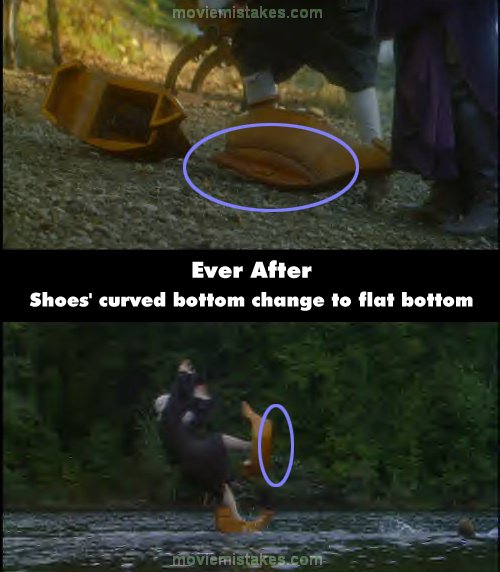 Continuity mistake: During the scene where Danielle is swimming, in the shot where DaVinci walks past her and says, "It looks like rain," the bottoms of his 'shoes' are flat, but in the shot where he and Danielle are exiting the water they have a fin shaped bottom. This also proves he was walking in a shallow pool of water. (00:43:35)