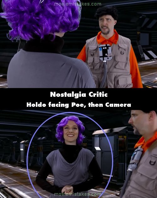 Continuity mistake: When Poe, played by Nostalgia Critic, is walking up to Holdo, she is shown already turned to face him, with him then stopping in front of her. Then, in the next shot, suddenly she's turned towards the camera and Poe is now walking into frame and stopping again. (00:07:20)