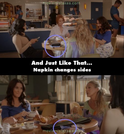 Continuity mistake: At the bakery, Seema's napkin is first under her bag. A shot later, it has moved to the left, under the saucer.
