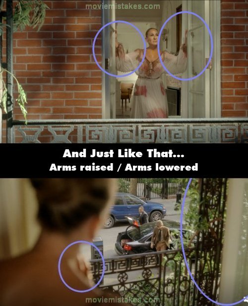 Continuity mistake: When Carrie opens the windows, she raises both arms. However, in the reverse shot from behind, her right arm is lowered and her left hand is positioned over her chest.