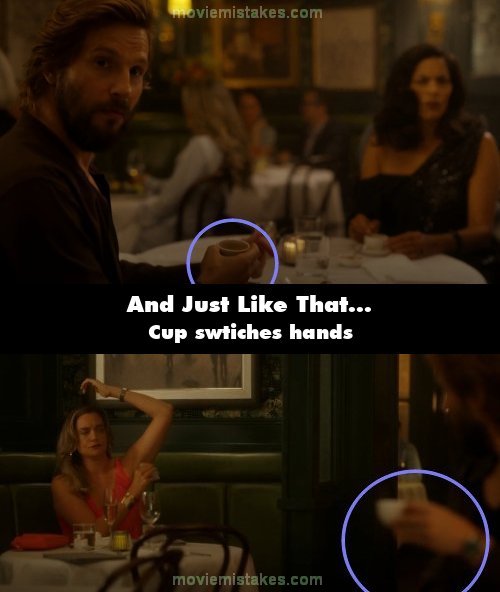 Continuity mistake: When Adam notices the woman putting on deodorant, he is holding a cup in his right hand. In the next shot, the cup is in his left hand.