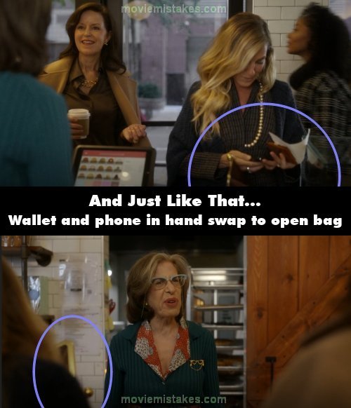 Continuity mistake: At the deli, Carrie is checking her wallet and phone. In the next shot, she's checking her bag. (00:01:00)