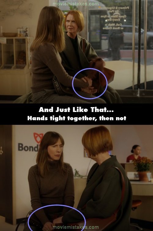 Continuity mistake: At the vet, Joy and Miranda are holding hands. In the next shot, they are not.
