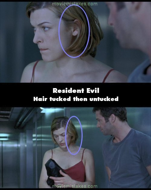 Continuity mistake: Alice asks if Spence remembers anything from before it all kicked off. When she does, her hair is tucked behind her left ear. When the shot changes, however, it's no longer tucked neatly. (00:25:20)