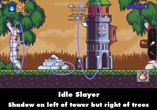 Continuity mistake: In the Forest, Higgens' tower is darker on the left side, indicating the light source or the sun is shining on it from the right. Yet the trees around it and Sarah Hanes' grave that is right next to the tower have their shadows on the right side, as if the sun is shining from the left.