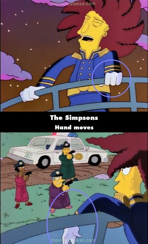 Continuity mistake: When captured at the end, Bob says, "By Lucifer's beard," and grabs hold of the railings. When the shot changes, he's back to hanging over the railings. (00:20:20)