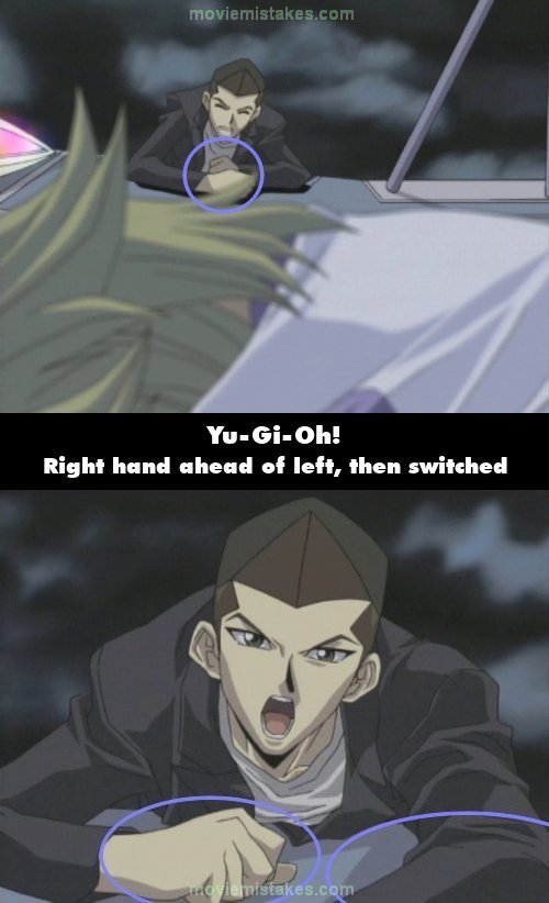 Continuity mistake: When Tristan climbs onto the duelling platform to see if Joey is OK, his right hand is ahead of his left hand. The guard then tells Tristan to get down, and he is not shown moving his hands, but in the next shot of Tristan, his left hand is suddenly ahead of his right hand. (00:08:12)
