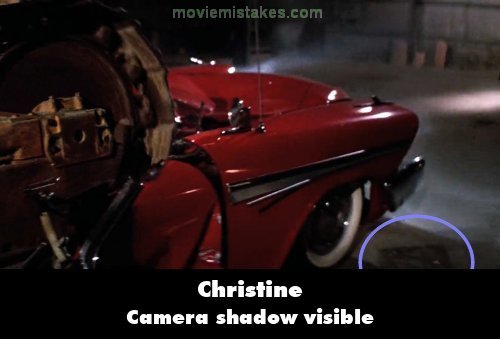 Visible crew/equipment: When Leigh and Dennis destroy Christine with the bulldozer, the camera shadow is visible on the bottom right of the screen while moving. (01:44:57)