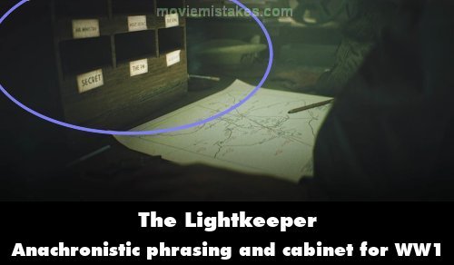 Factual error: In the 1918 WW1 flashback in France, Wooden desk organizer with folders labeled "Most Secret," "The King," "The PM," "Air Ministry," etc., and a hand-drawn map. British headquarters did label correspondence by recipient ("War Office," "PM," etc.), but not usually with printed tags on pigeonholes marked Most Secret; that phrasing came into official use after WWI (interwar period onward). "Air Ministry" existed from January 1918, so its inclusion is technically correct. The typeface and office furniture again feel WWII-era, not Great War.