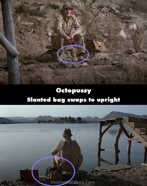 Continuity mistake: When Q is fishing, the bag beside him rests slanted against the rock, but in the reverse shot it's suddenly upright.