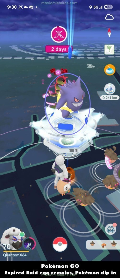 Bug: Sometimes after a raid ends, the Egg for the raid boss will still be visible on top of the gym even though it has ended. This can also mean that when other Pokémon that are inside the gym appear on top of it, their bodies will be clipping into the Egg.