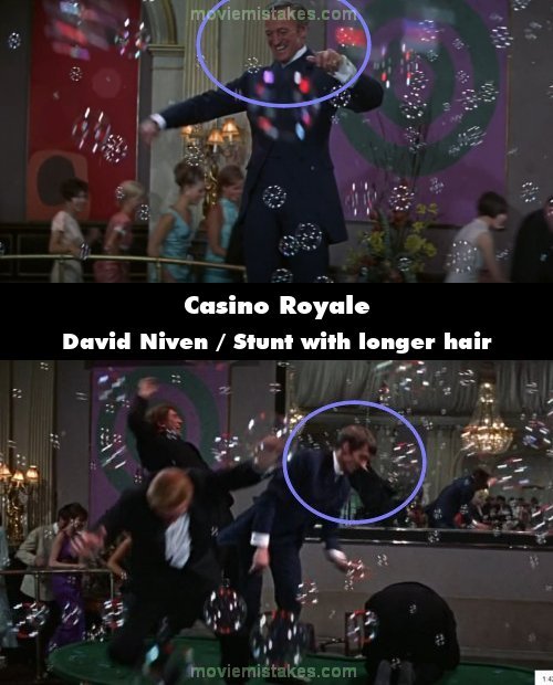 Revealing mistake: During the casino fight, when Bond kicks a man, he is suddenly replaced by an obvious stunt double with much thicker hair.