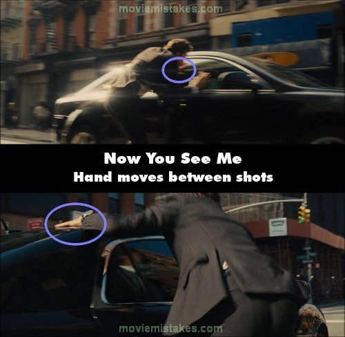 Continuity mistake: When Jack is about to flee in the FBI car, Dylan runs up to the car and places both of his hands on the front passenger-side window. When the shot cuts, his left hand is placed on top of the car. (01:20:51)