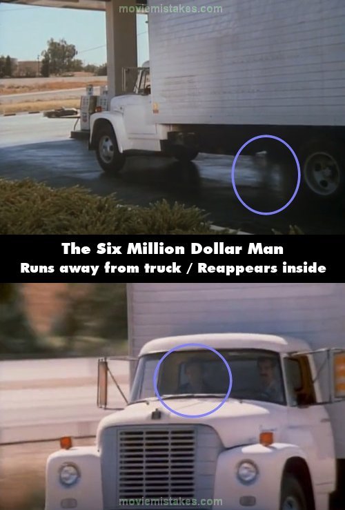 Revealing mistake: The two baddies run towards the truck: one jumps into the driver's seat, while the other runs around the vehicle towards the passenger side, where he later appears. However, if you watch the bottom of the truck, his legs and shadow can be seen running away from the vehicle, contradicting his subsequent position. (00:22:01)