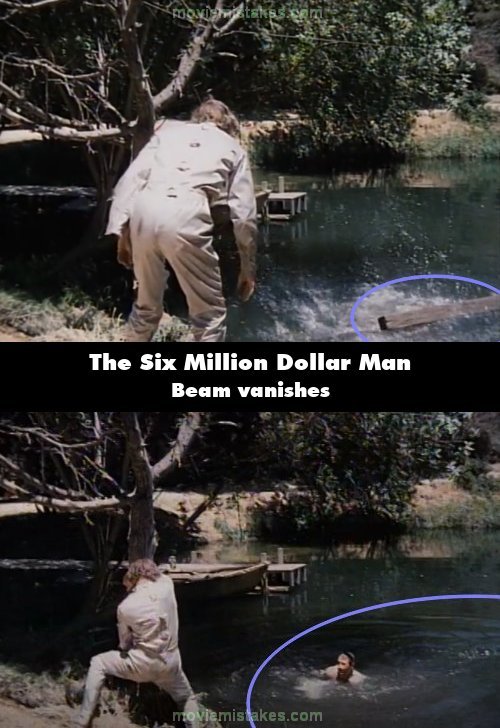 Continuity mistake: David throws a beam into the water where Steve is, but in the following shot, the beam has completely vanished.
