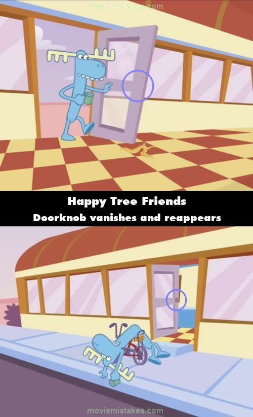 Continuity mistake: Ipso Fatso: When Lumpy opens the door to the café, the doorknob is missing from the door; then it reappears a moment later. (00:08:40 - 00:09:40)