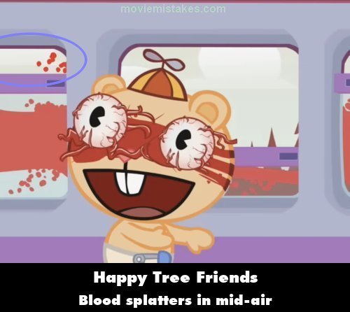 Other mistake: Don't Yank My Chain: In the close-up of Cub after the train exits the tunnel, the window to the left is slightly open. There are blood splatters right above the glass, but since there is no glass there, the blood splatters are bizarrely floating in mid-air. (00:20:52)