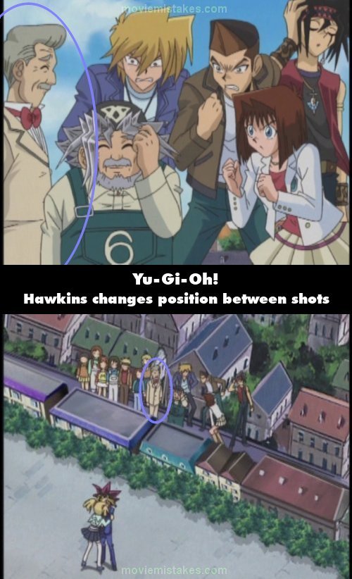 Continuity mistake: When Solomon calls Rebecca dramatic, Joey, Tea and Tristan get annoyed at him. At this moment, Professor Hawkins can be seen to the left of the shot, facing 90 degrees away from Solomon. Then it cuts to a wide shot where Professor Hawkins has rotated a few inches to the right so that he can face Solomon. (00:20:28)