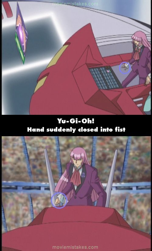 Continuity mistake: When Zigfried activates his Magical Arms spell card, his life points increase from 1100 to 2100. When this happens, the fingers in his right hand are opened out, but when the shot cuts, his right hand is closed into a fist. (00:15:35)