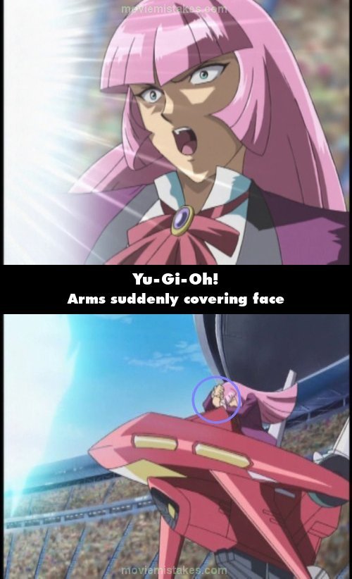 Continuity mistake: When the final Blue-Eyes White Dragon is about to attack Zigfried, in the shot of Zigfried saying "No," his arms are away from his face. In the next shot, his arms are covering his face in order to brace himself for the attack. (00:20:05)
