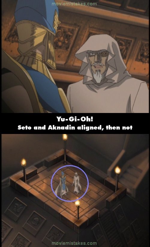 Continuity mistake: When Seto is telling Aknadin about his plan, in the shot where Aknadin is telling him his plan is immoral and dangerous, the two are standing in a position where they are aligned with one another. It then cuts to a wide shot where they are not aligned. They are aligned again when the shot cuts. (00:06:45)