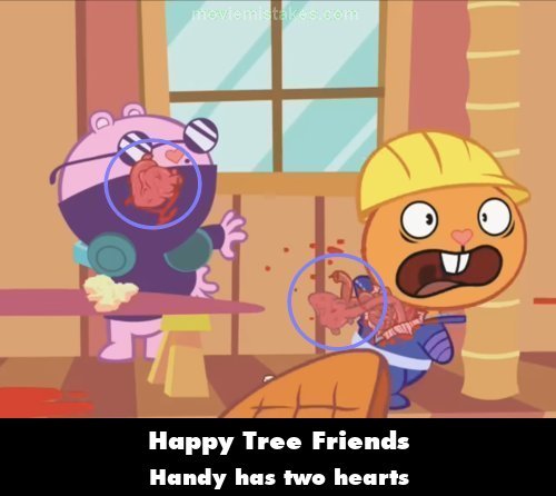 Other mistake: Wipe Out!: When The Mole unzips Handy's wetsuit and Handy's organs spill out, Handy has two hearts. One flies out of his body, and the other is still attached to him. (00:10:29)