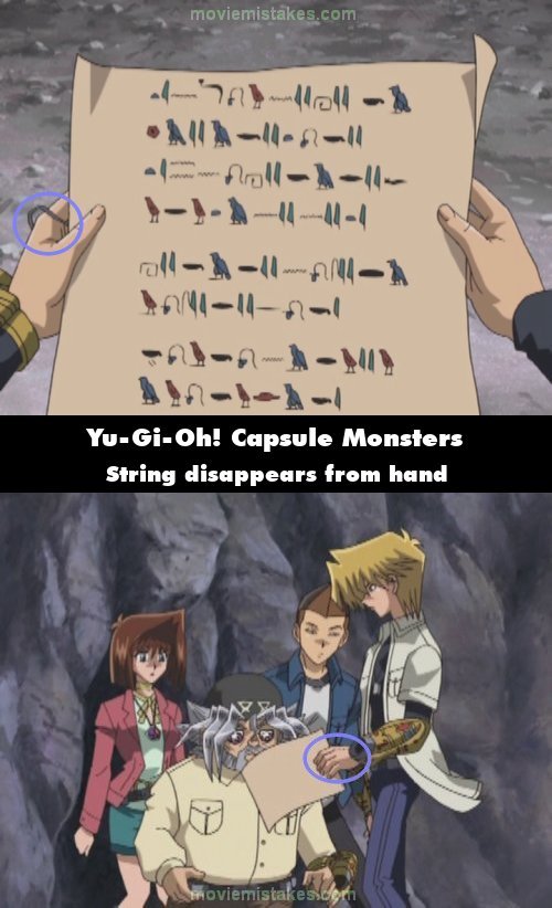 Continuity mistake: When Joey opens the second scroll, the string that was wrapped around the scroll can be seen on Joey's left hand. He then hands the scroll to Solomon, and the string has disappeared from his hand. (00:04:00)