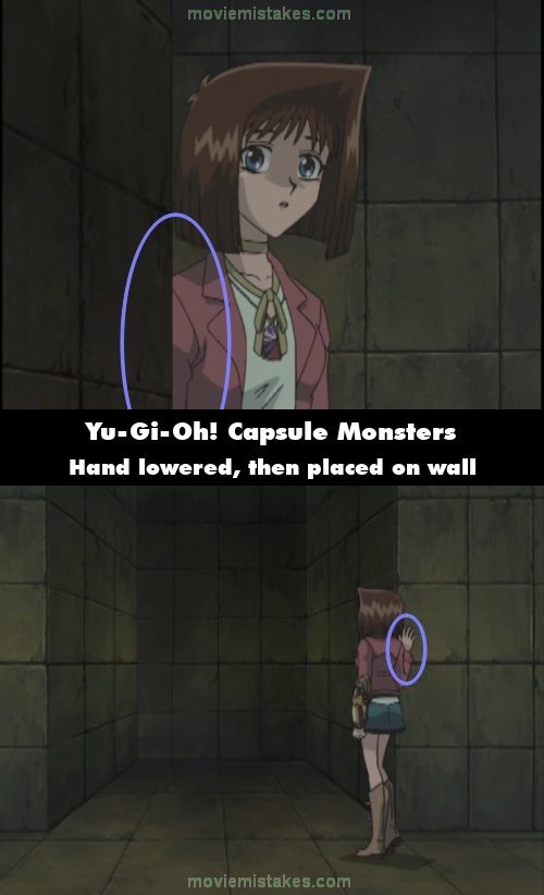 Continuity mistake: After Tristan opens the rock capsule, Tea is shown walking around a corner to find a dead end. Her arms are at her side, but when the shot cuts, her right hand is placed on the wall. (00:08:53)