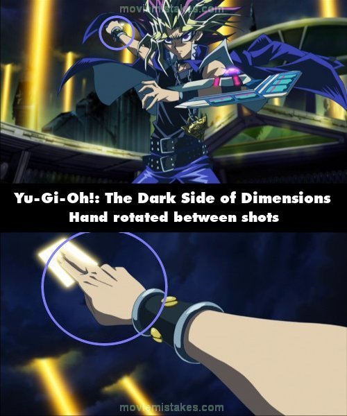 Continuity mistake: When the Pharaoh draws a card from his deck, he extends his arm behind his back after drawing the card. His hand is rotated to the right slightly after extending his arm, but when the shot cuts, his hand is straight. (01:55:36)