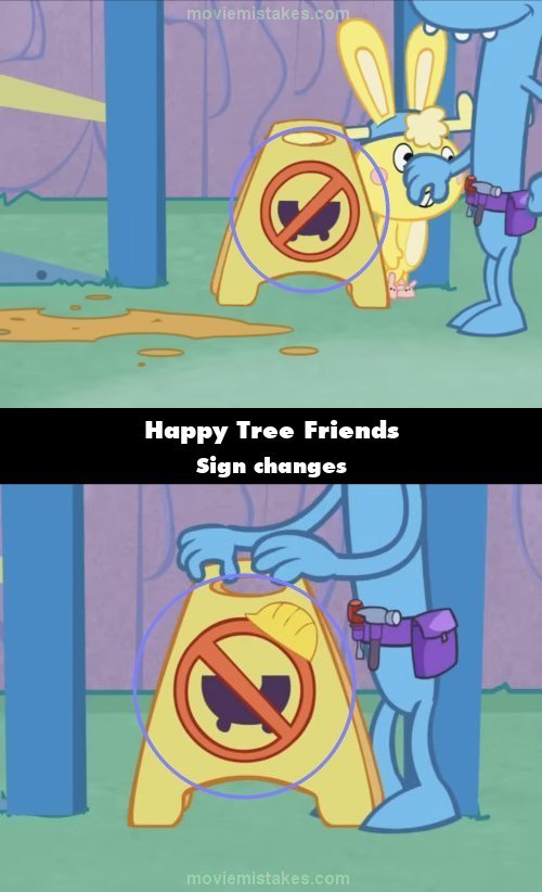 Continuity mistake: The Wrong Side of the Tracks: When Lumpy puts the yellow sign in front of the roller coaster entrance, the sign is a roller coaster cart with a no symbol over it. However, when Lumpy removes the sign later on, the no symbol is facing the opposite way, and a hard hat symbol appears on the sign. (00:02:16 - 00:04:21)