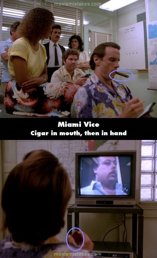 Continuity mistake: When everyone is watched the footage of the party at the station, Zito has a cigar in his mouth when he starts to write something on his pad. When the shot cuts, he is holding the cigar in his hand. (00:17:07)