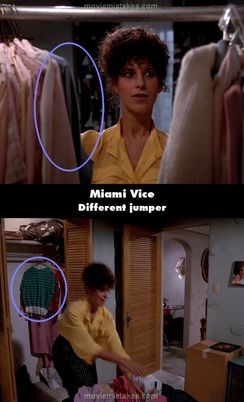 Continuity mistake: When Darlene is looking over the clothes in the closet, she separates the clothes on the clothing rod toward the left-hand and right-hand sides of the rod. To the left of the shot, the piece of clothing closest to Darlene is a grey jumper. But in the next shot, the grey jumper has been replaced with a striped green jumper. (00:07:00)