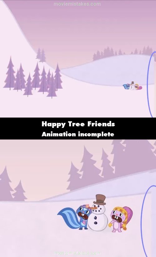 Other mistake: From Hero to Eternity: After Petunia and Toothy start to hear the giant snowball coming towards them, it cuts to a shot from further away. In this shot, the ground and hill are cut off at the far right side of the screen. The ground is also cut off two shots later. (00:10:03)