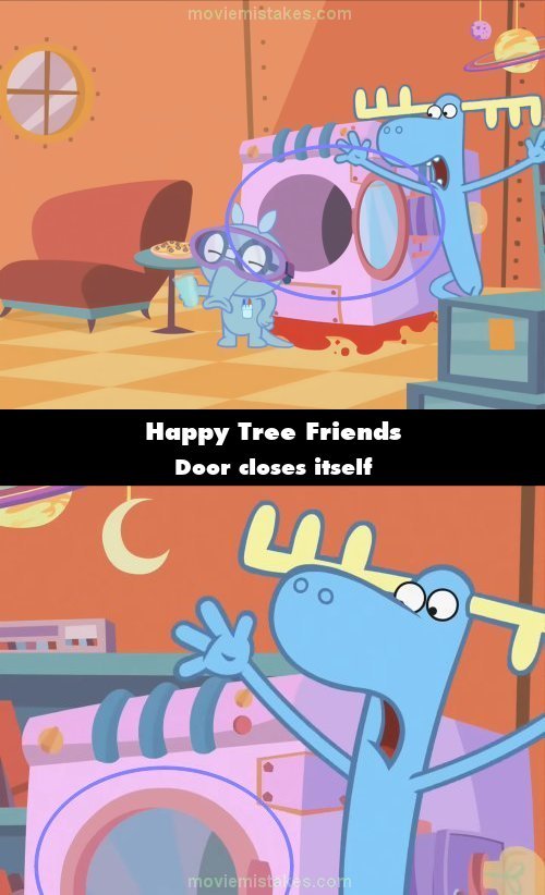 Continuity mistake: Blast From the Past: Near the start, when Lumpy appears in Sniffles' house, the door to Sniffles' time machine is open, but it is suddenly closed in the next shot. Two shots later, the door is open again. (00:01:43)