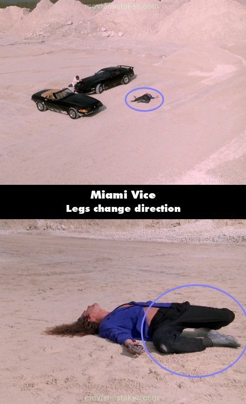 Continuity mistake: When Charlie is shot by Crockett, in the wide shot where Charlie falls to the ground, his legs are pointed to the right. Two shots later, his legs are pointed to the left. (00:44:06)