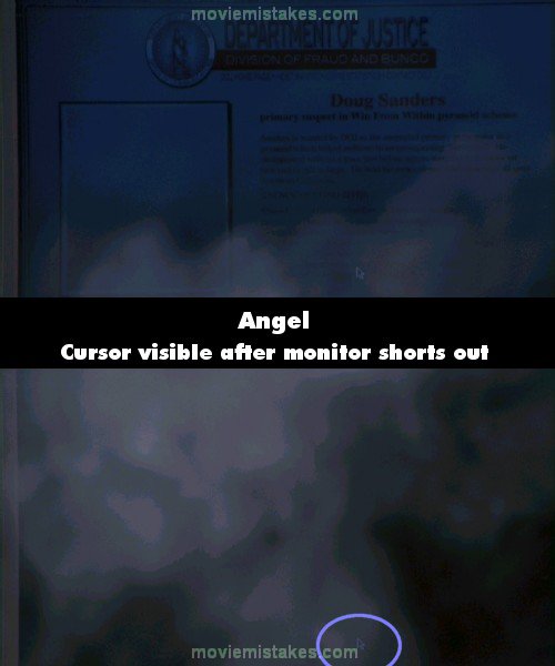 Other mistake: When Harmony spills her pig's blood on the keyboard, the computer shorts out, and the monitor flickers off, but the mouse cursor is still visible. (00:25:35)