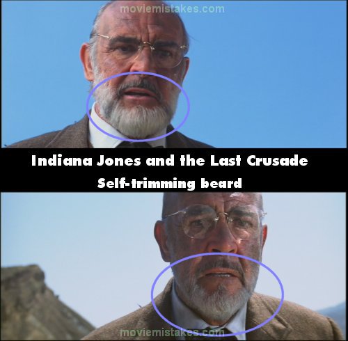 Continuity mistake: When they are first looking over the cliff at the tank, Sean Connery's beard is quite full, and in a shot moments later, still looking off the cliff, it has been trimmed. This is due to the fact that this scene was filmed after principal photography had ended.