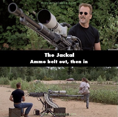 Continuity mistake: When Bruce Willis turns the big gun on Lemont, the ammo feed belt falls out. The next time you see the weapon the ammo feed belt has been placed back in. (00:58:20)
