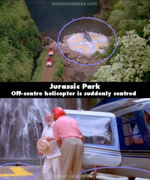 Continuity mistake: When the helicopter first lands on the island it is clearly not on the cross on the landing pad. Later in the scene it is. (00:17:25)
