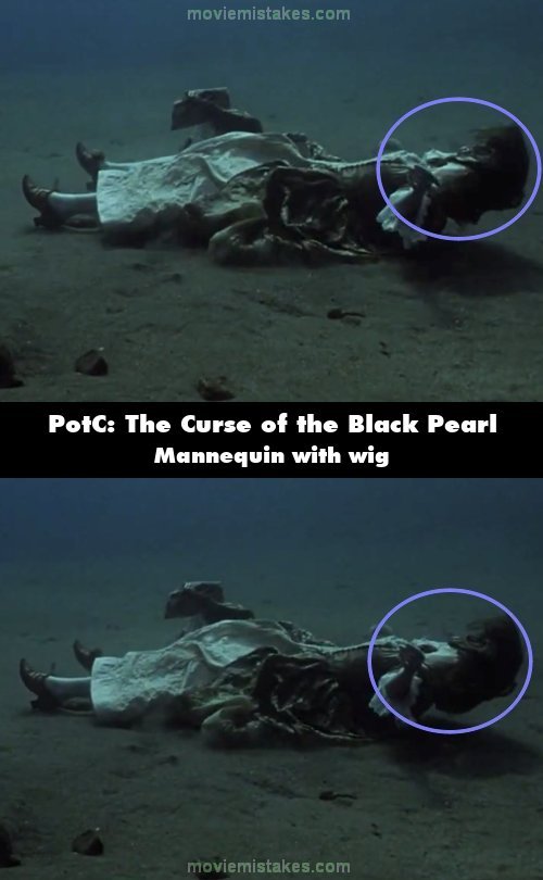 Revealing mistake: In the wide shot, when an unconscious Elizabeth reaches the water's bottom, the body is a mannequin that has been weighted down in the middle. The white mannequin head can be seen as the body meets the bottom. (00:15:55)