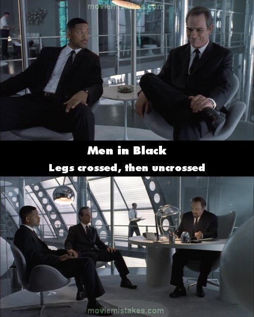 Continuity mistake: When Zed sends Kay and Jay out on Kay's first mission, Reggie's unauthorised departure from Manhattan, Tommy Lee Jones legs cross and uncross from shot to shot. (00:39:25)