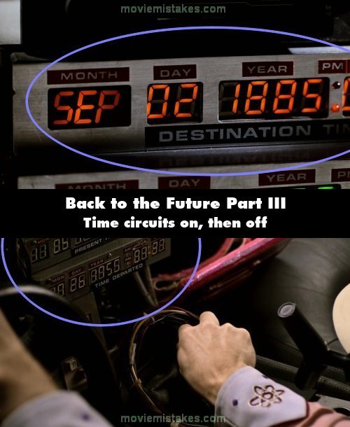 Continuity mistake: When the Doc of 1955 is about to send Marty back to 1885, he turns the time circuits on. However, if you look at the time circuits after Marty has reversed, you can see that they are turned off. (00:17:15)
