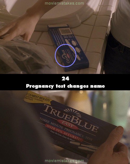 Continuity mistake: In Episode 15 (Day 1), the pregnancy test that Teri takes to the bathroom is a "TrueBlue" (close up shot on it), but the one that Kim finds there is a "ClearBlue". (00:13:07 - 00:19:57)
