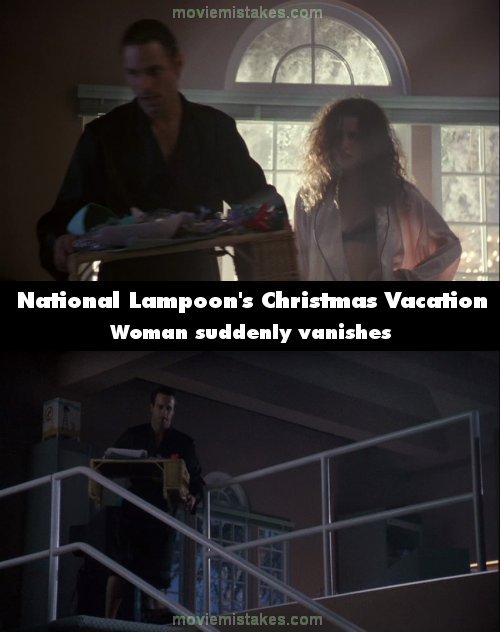 Continuity mistake: When Todd, the snob neighbor, falls down the stairs, his wife Margot is not visible in the bedroom. (00:38:55)
