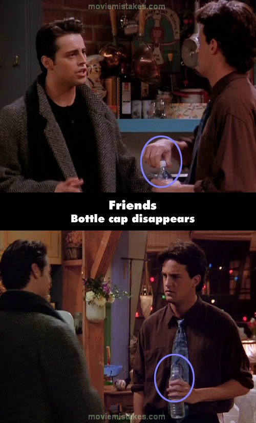 Continuity mistake: Just after Marcel switches the TV to "SAP," Joey comes back and tells Chandler about Ursula and how she gave him extra food. Chandler is holding a bottle of water, and before the camera cuts to Joey it is open, but when he is talking it is capped, and finally when Chandler says "Score," the bottle is open again. (00:07:05)