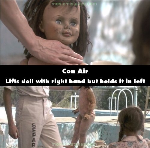 Continuity mistake: When we see the close-up shot of Steve Buscemi grabbing the doll, he is picking it up with his right hand. But in the next shot, when you see a wider view of him picking it up, it is now in his left hand. (01:12:55)
