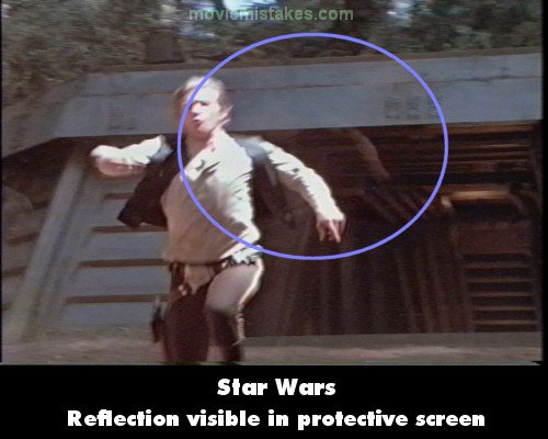 Revealing mistake: When Han is running from the explosion of the shield generator on Endor, you can see his reflection in the plexiglass that is used to protect the camera from the explosion. Since the reflection isn't of Han's back, the plexiglass must be in front of him. (01:49:55)